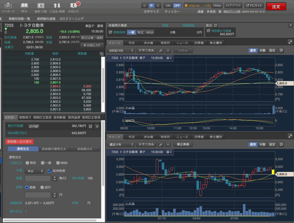 | 売値 | 9:25 | 3502.5 | 9:32 | 2800.5 |