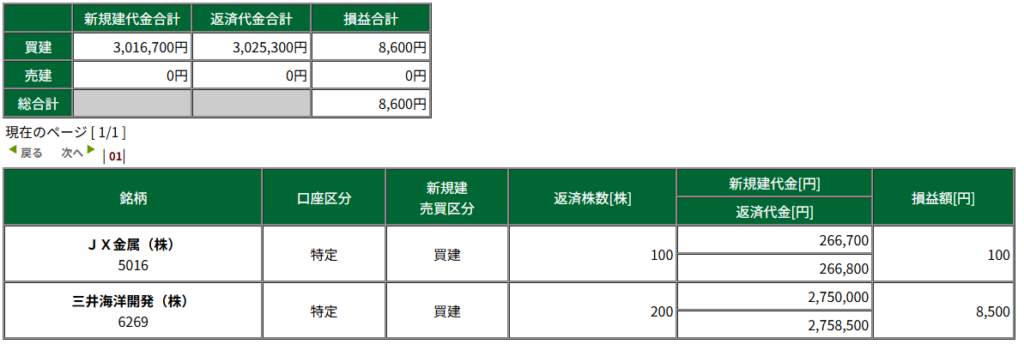 | 実損益 | 8600 |