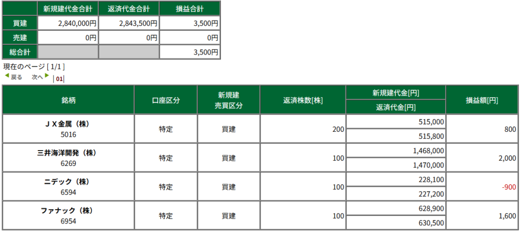 | 取消済 | JX金属 | 5016 | 売 | 200 | 2581.5 | – | – | – | 意外と方向が決まらず、マイナスをキープ。そこまで強くなさそうだったので利確。利確タイミングはよかった。 | |